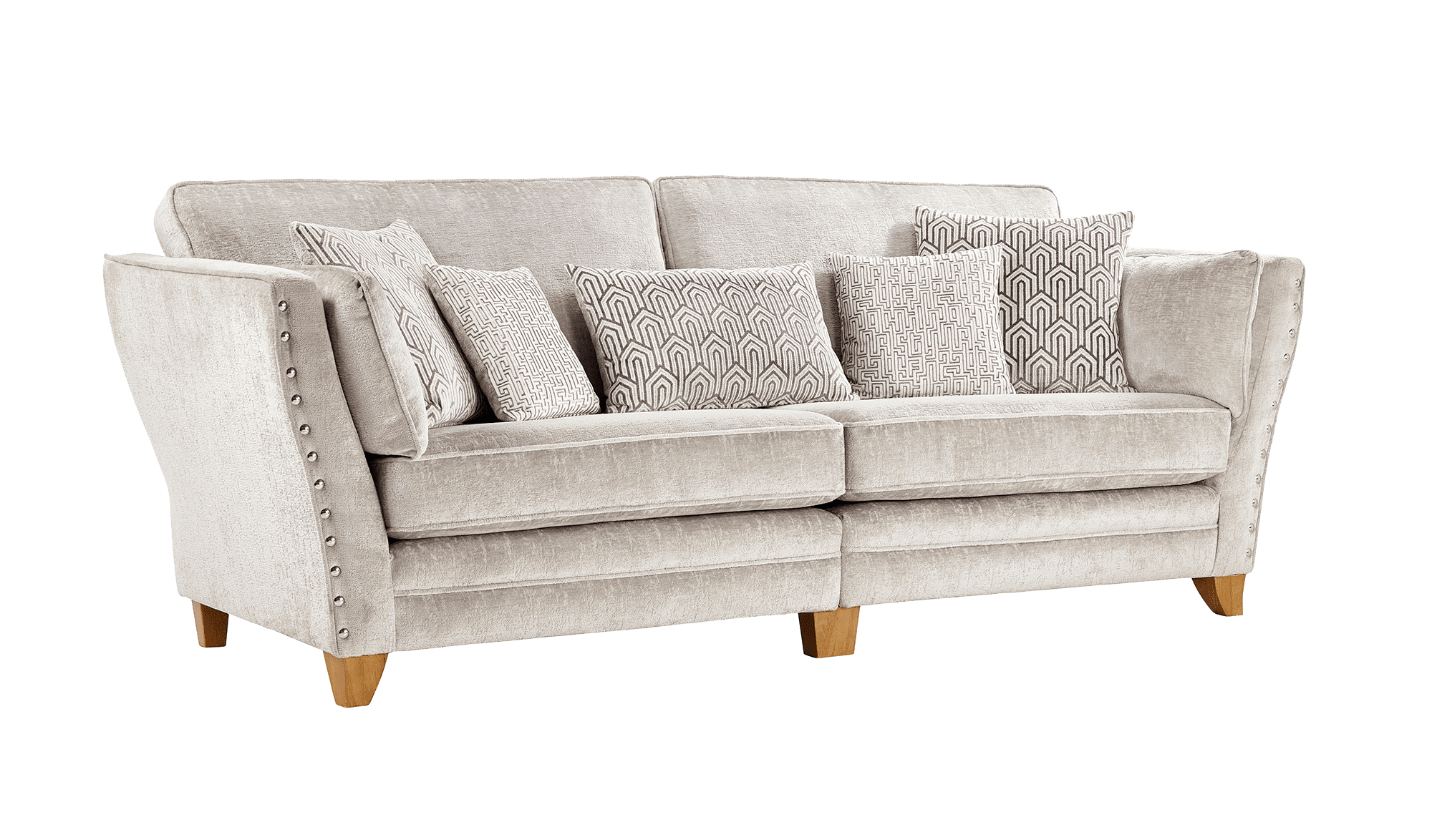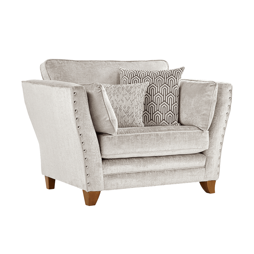 Each sofa is adorned with stunning silver stud detailing along the sides, adding a touch of sophistication. Matching pillows are included, ensuring a cohesive, stylish finish. The Athena collection offers versatility with multiple sizes, including a cosy armchair, spacious 4-seater, and two corner configurations, giving you endless options to fit your home.