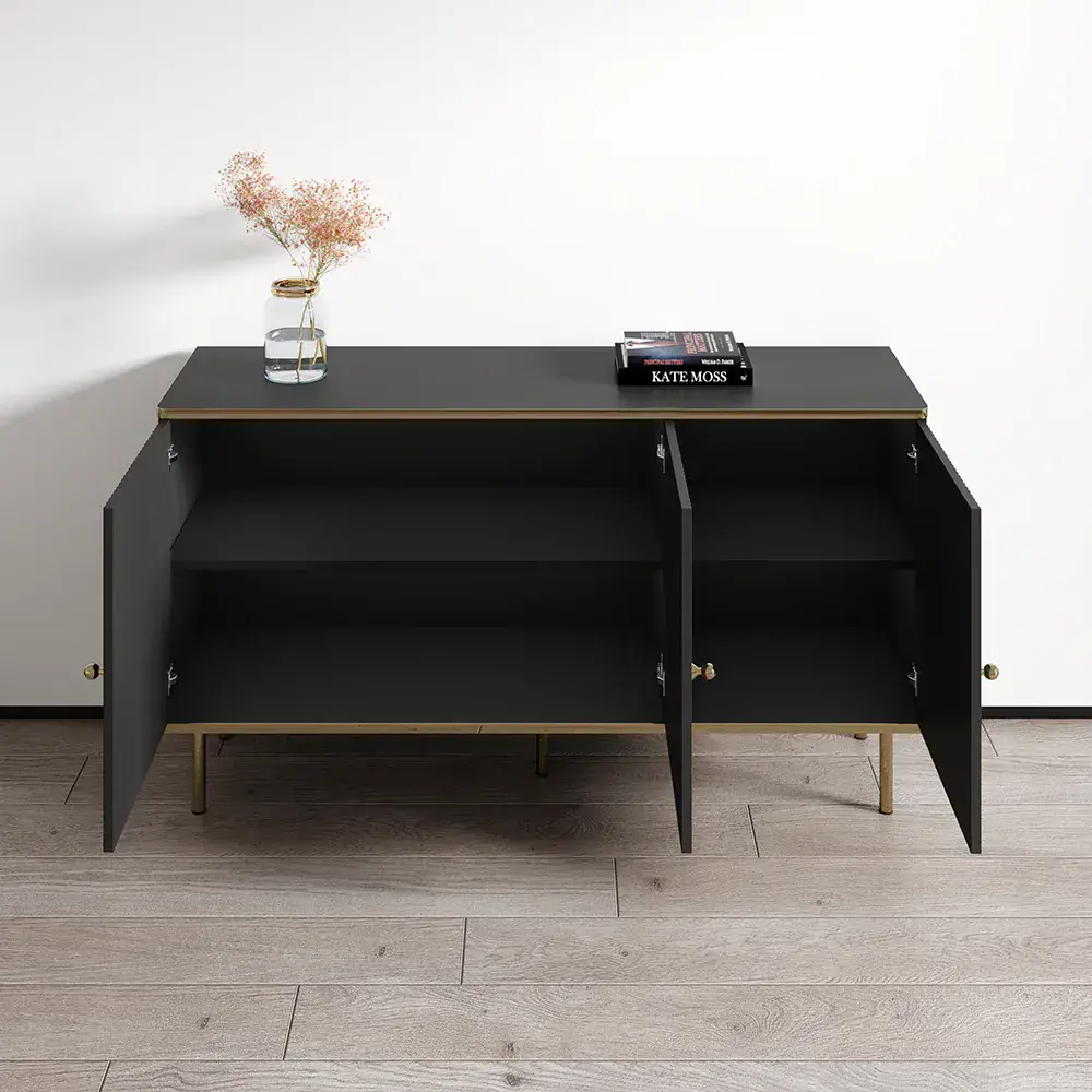 Camelia Black and Gold Elegant 3 Door Sideboard Storage Unit - Opulent Storage with Timeless Appeal!