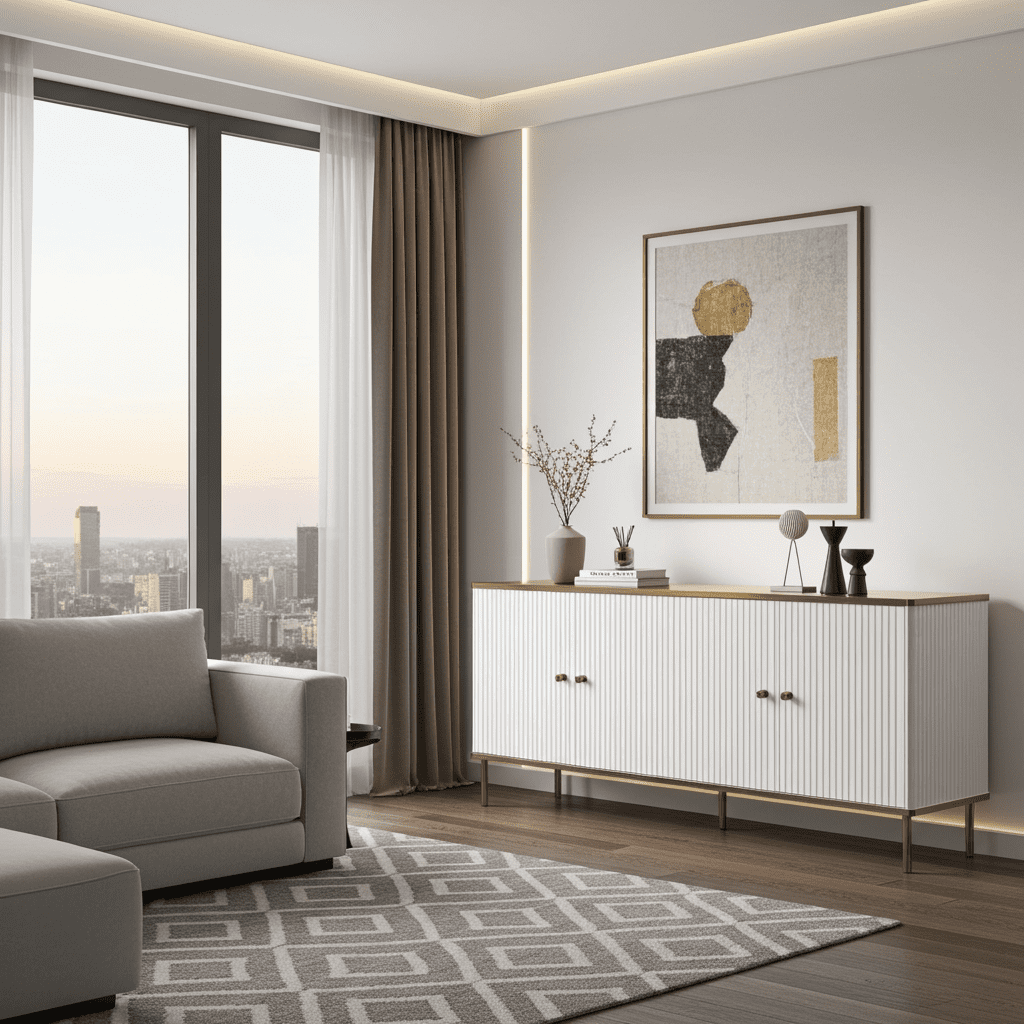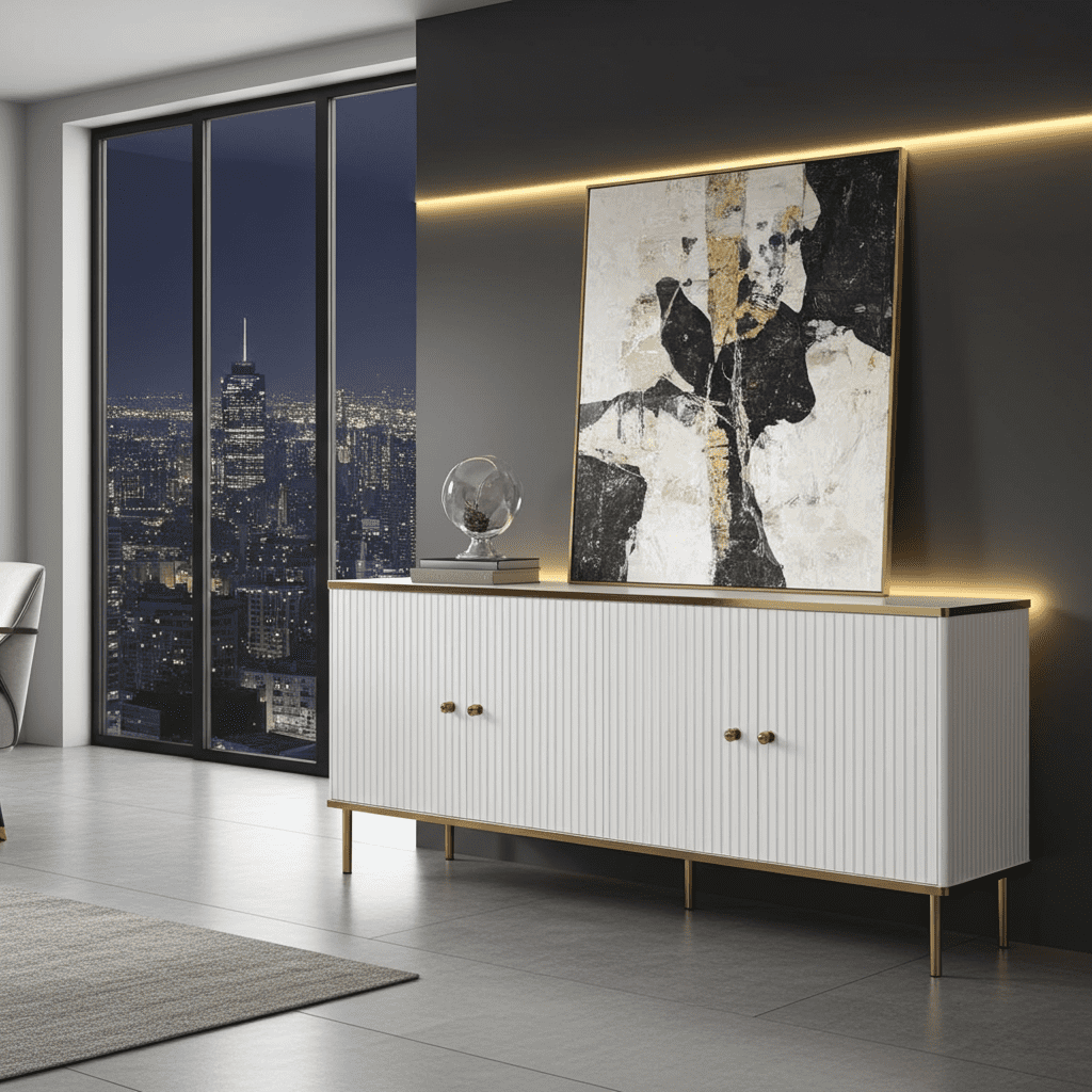 Camelia White and Gold Elegant Large Wide 4 Door Sideboard Storage Unit - Opulence Redefined in Your Living Space!