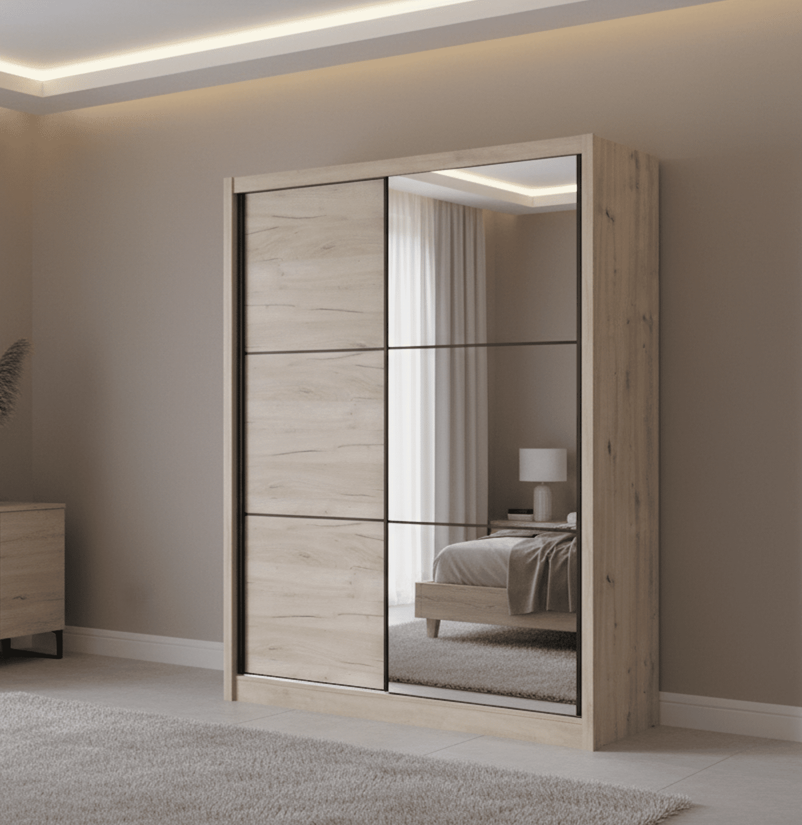 Modern Sliding Door Wardrobe in Oak Effect with Mirrored Door