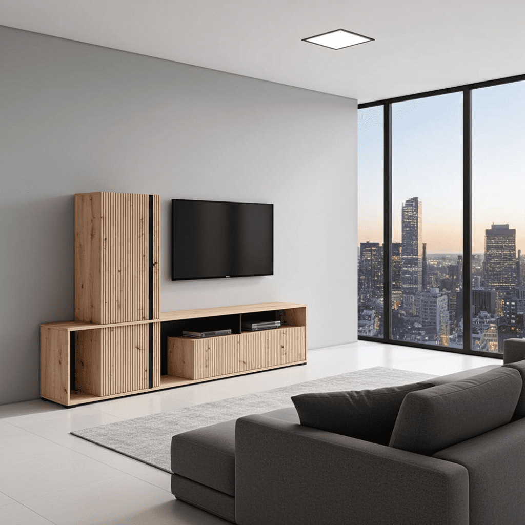 Redefine your living room with the Chania Artisan Oak Wall Unit and enjoy a perfect balance of elegance and functionality. Order now to transform your home entertainment experience!