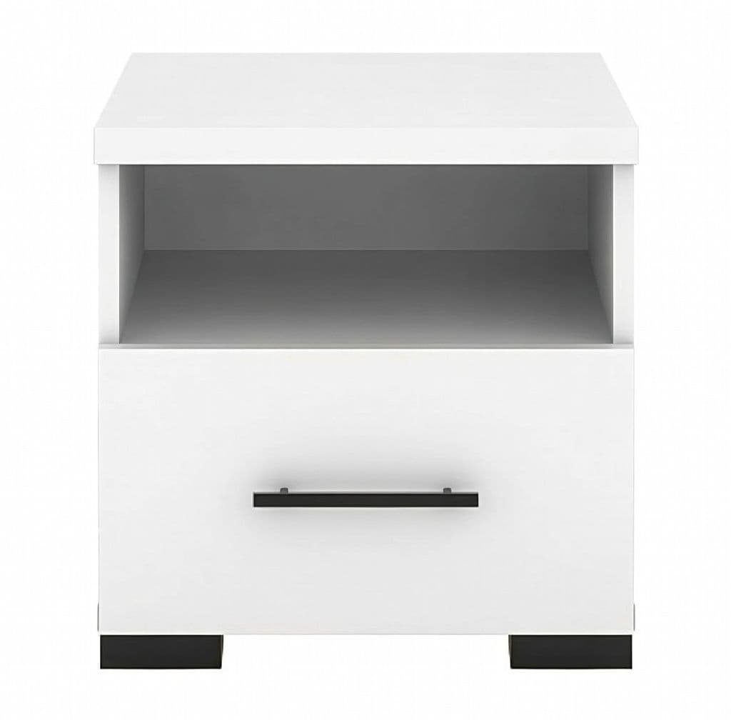 The modern Inova beside unit finished in high quality white. This bedside features 1 drawer, 1 shelf and a large top surface proving ample storage space.