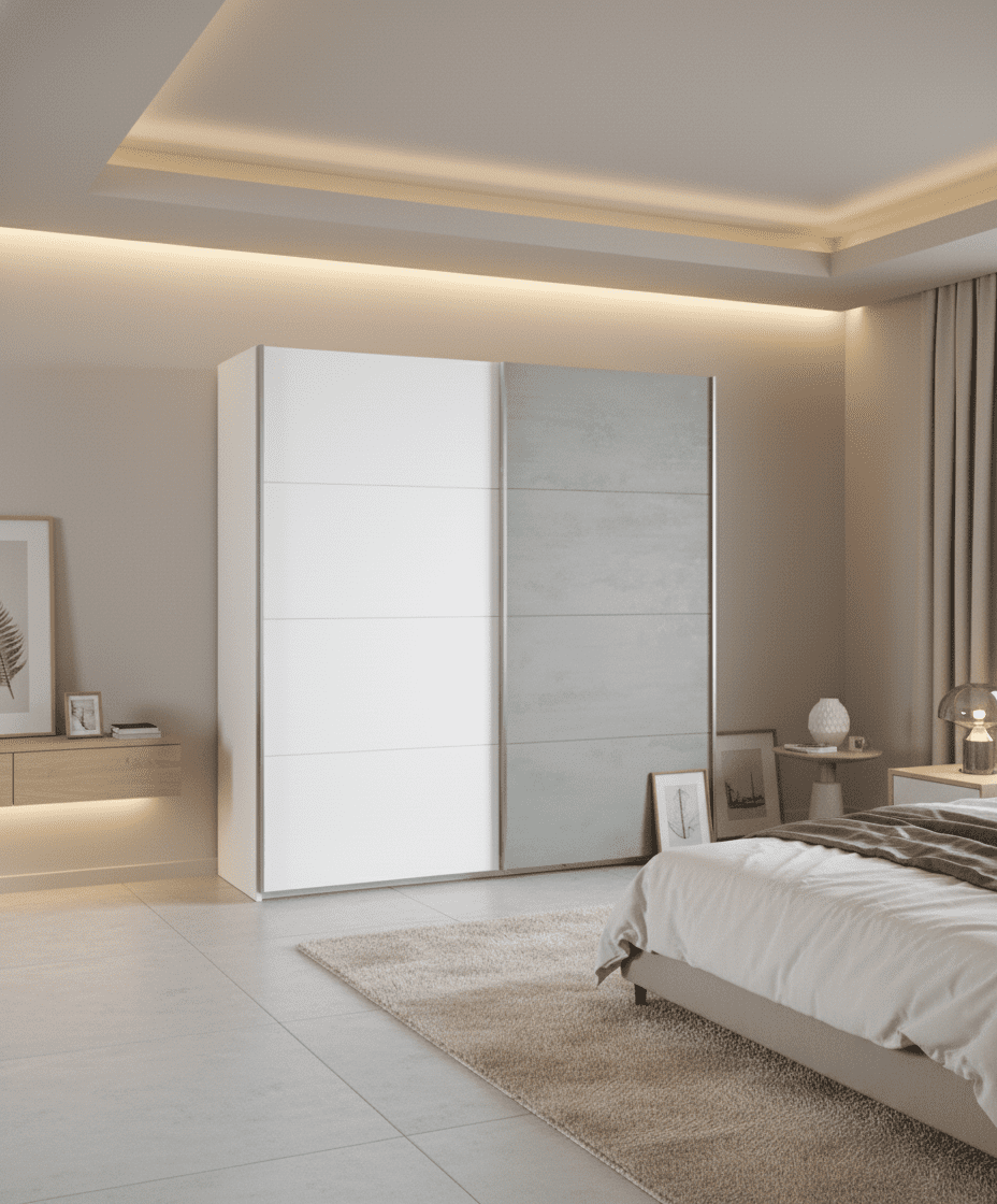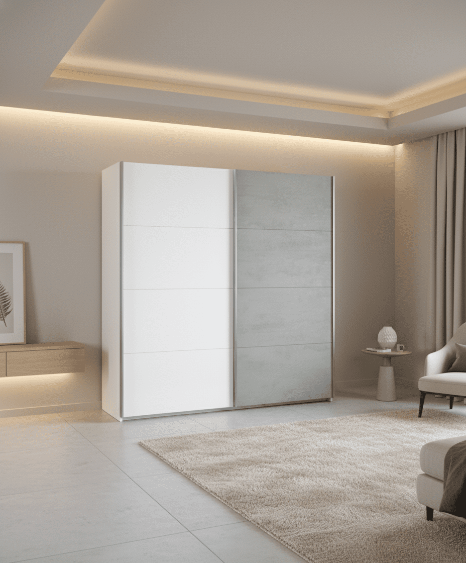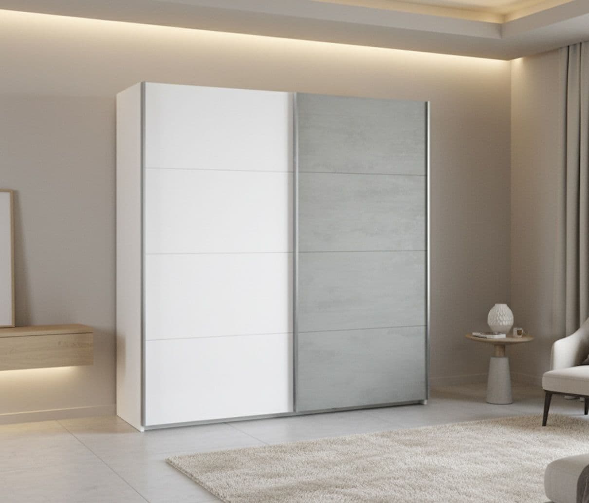 Elevate your bedroom storage with the Lido White and Concrete Grey Sliding 2 Door Wardrobe. Enjoy the convenience of sliding doors and a space-saving design without compromising on style. Order yours today!