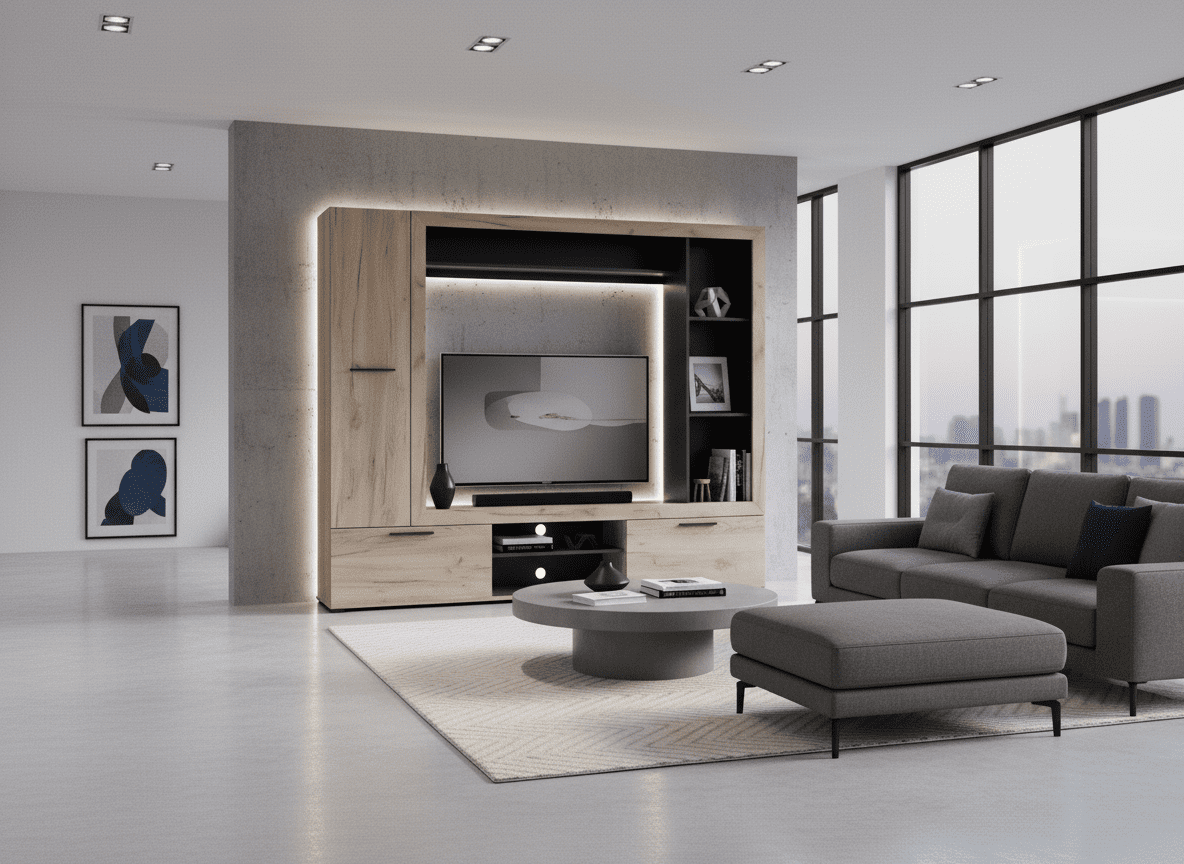 Transform your living room with the Lorca Grey Oak Effect and Black Entertainment Unit, and enjoy the perfect mix of style, functionality, and space-saving design. Order now to complete your modern living space!