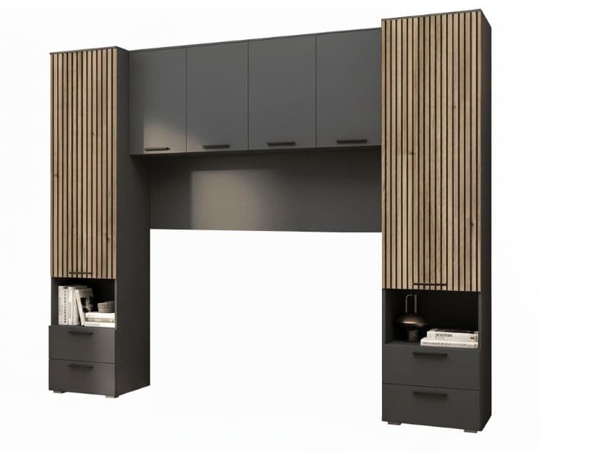 Milano Anthracite Grey & Slat Oak Effect Over-bed Storage Unit with Matching Bed - 3 Colours