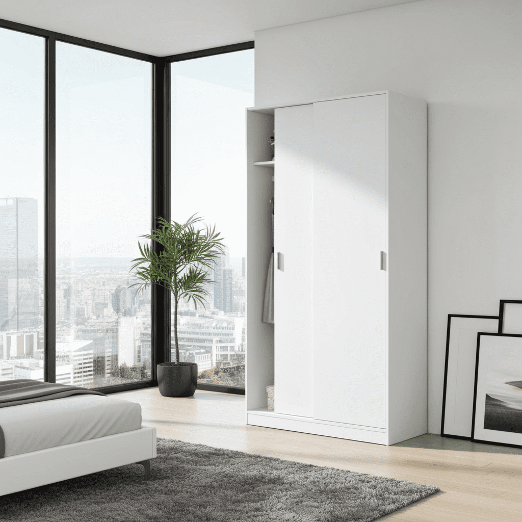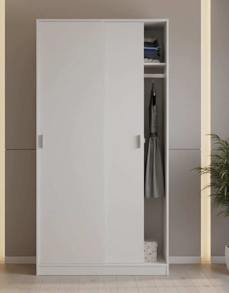 Elevate your bedroom storage with the Mytre Small Narrow Space-Saving Sliding 2 Door Tall Wardrobe. Enjoy the convenience and functionality of a wardrobe designed specifically for compact spaces. Order yours today!