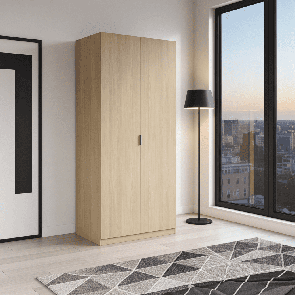 Enhance your bedroom's storage with the Spiro Oak Effect Compact Narrow Wardrobe, a stylish and space-saving solution for modern living. With a width of 81cm, this wardrobe is perfect for smaller rooms where space optimization is key. The oak effect finish adds a touch of timeless elegance to your living space.