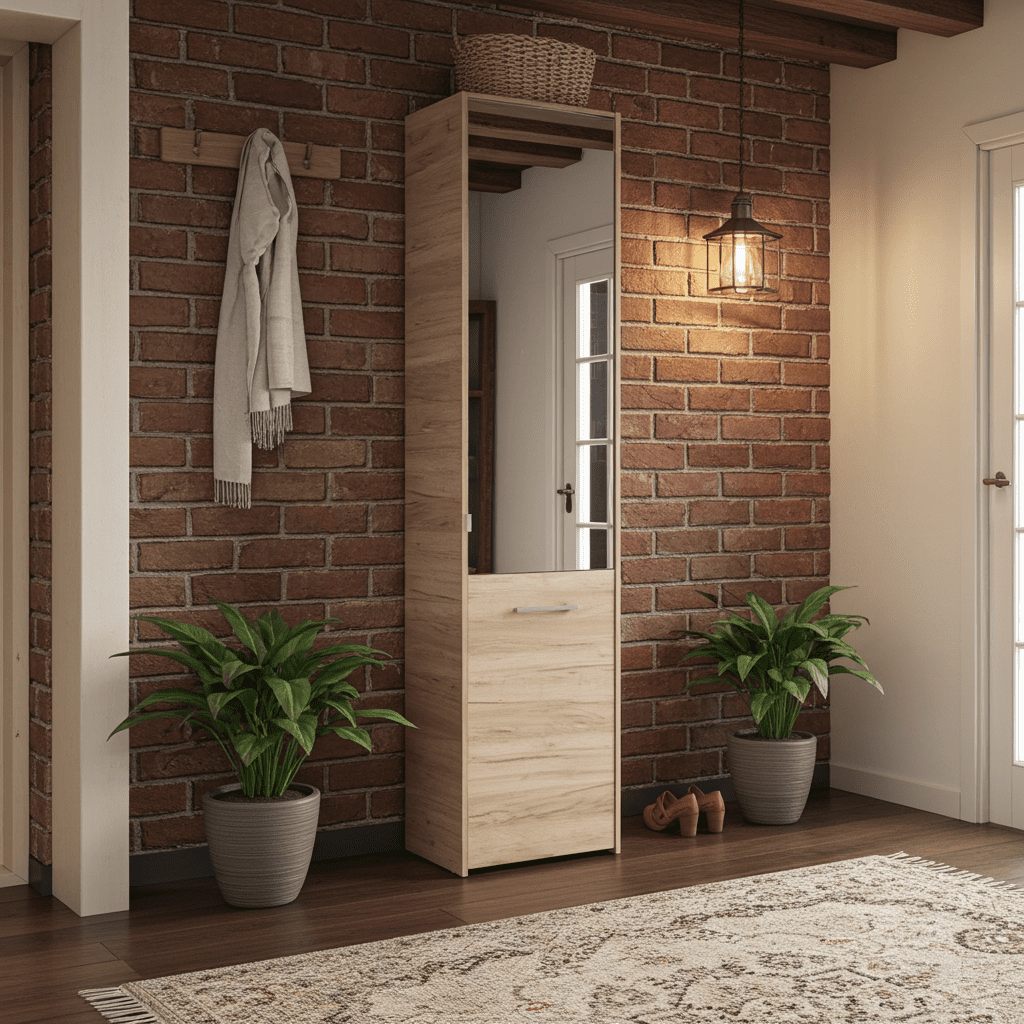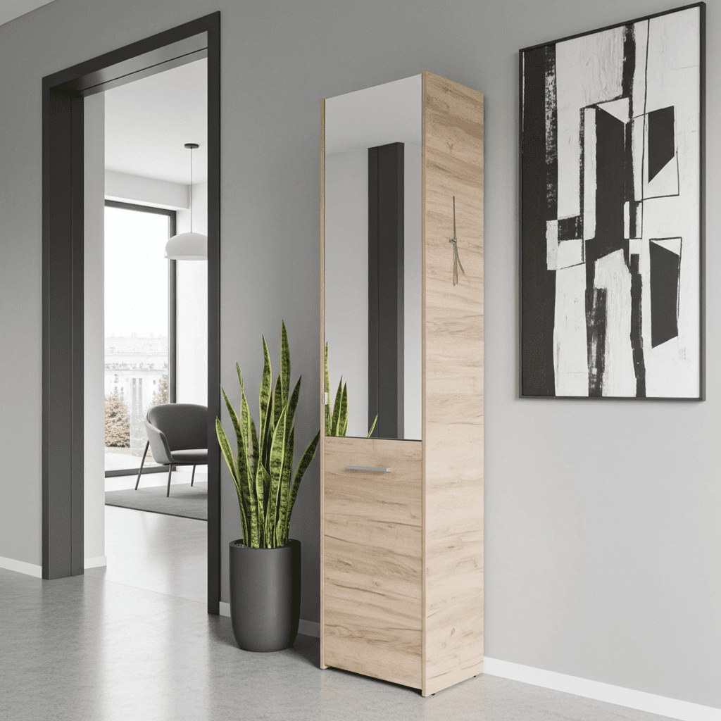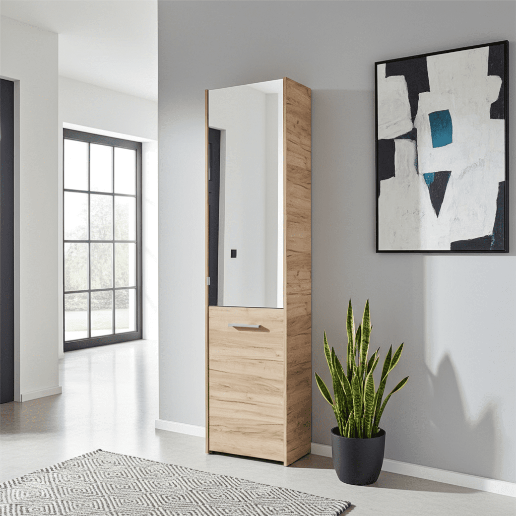 Tokyo Oak Effect Mirrored 1-Door Tall Slim Shoe Cabinet – Stylish and Functional Storage for Up to 30 Pairs!