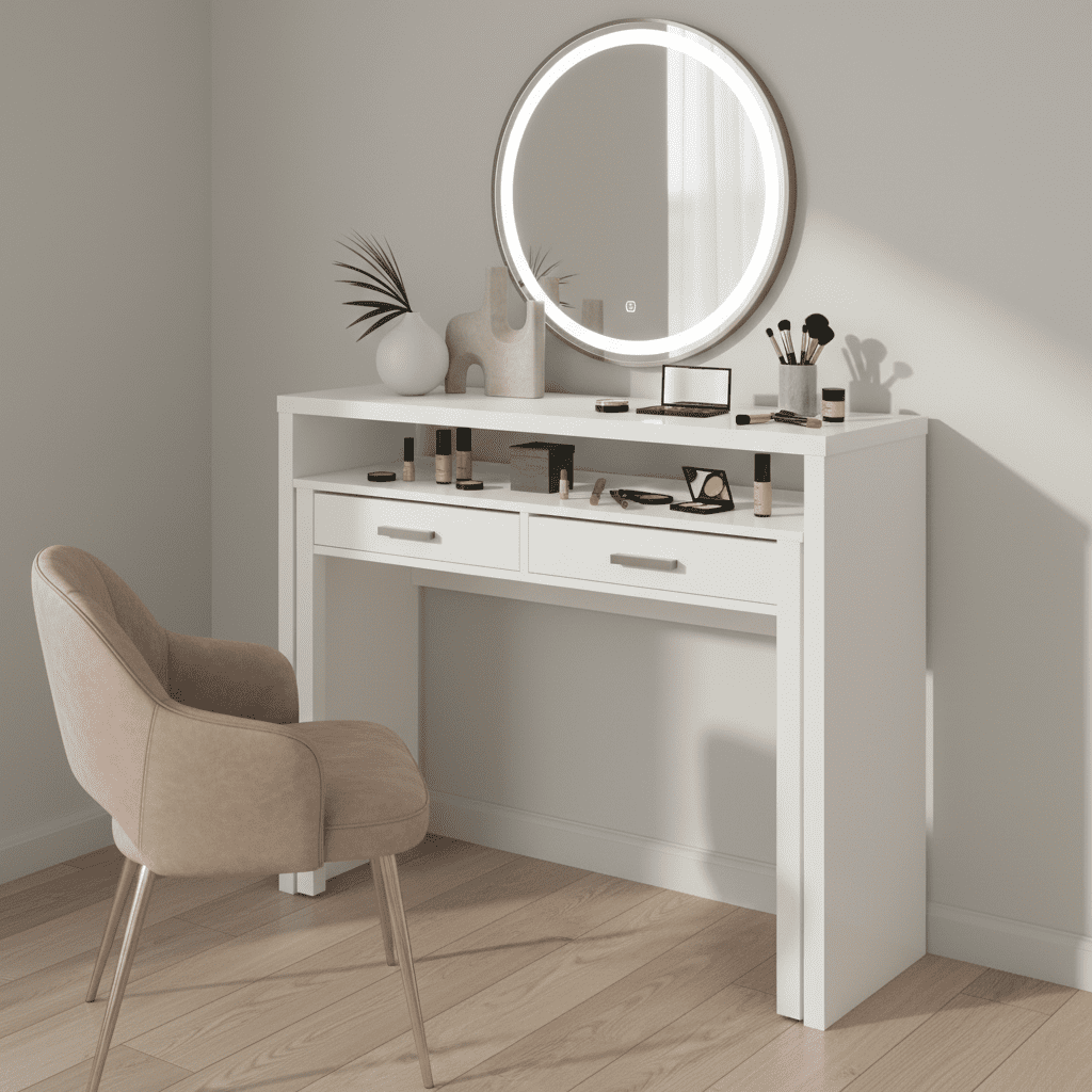 Its slim profile makes it ideal as a small space desk or 1m console desk, while the extending feature ensures you never compromise on functionality. Whether you're working from home, studying, applying makeup, or using it as a hallway console, this multi-purpose desk adapts to your lifestyle.